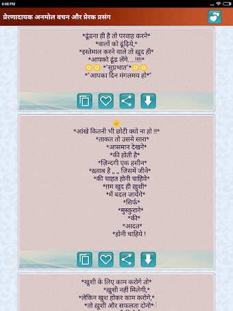 De app 'प्रेरणादायक अनमोल वचन Inspirat' biedt een verzameling van motiverende en inspirerende citaten die zijn ontworpen om gebruikers te helpen tijdens moeilijke momenten in hun leven. Deze gratis applicatie, beschikbaar op Android, richt zich op het bieden van positieve boodschappen die kunnen helpen bij het overwinnen van demotivatie en stress. De citaten zijn bedoeld om gebruikers aan te moedigen om een optimistische kijk op het leven te behouden, zelfs in uitdagende tijden.